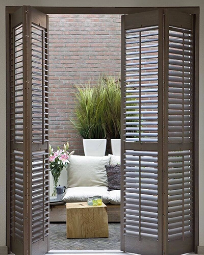 Tracked shutters slide on a track, making them ideal for wide windows or patio doors. You can also use them as room dividers.